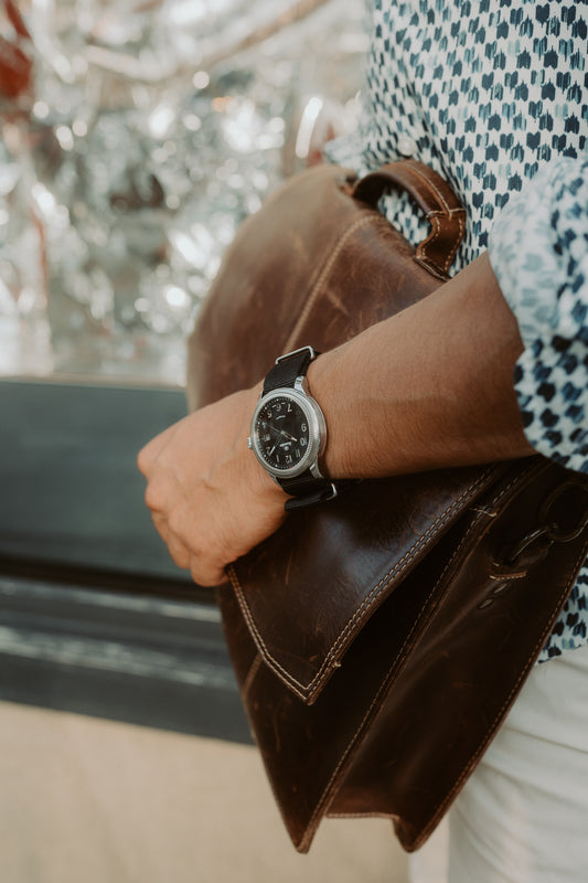 Classic Steel Black-Silver Black Leather